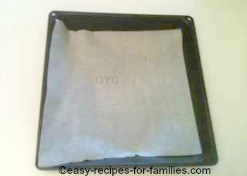 Line the roasting pan with parchment or baking paper.