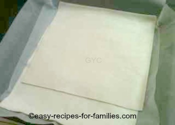 If you're using a non-stick bake-ware, don't be tempted to not use the greaseproof paper. Its role is not to prevent the pie sticking but to help keep the pie and generous topping in place when it is decanted onto a serving platter. Lifting it off the pan by lifting the paper keeps the pie and top in place.